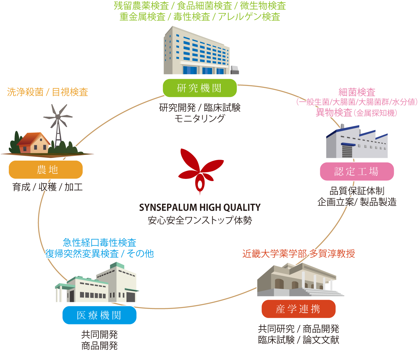 根などの主要な栄養素を厚生労働省の定める基準に適合する方法で研究を続けております。
