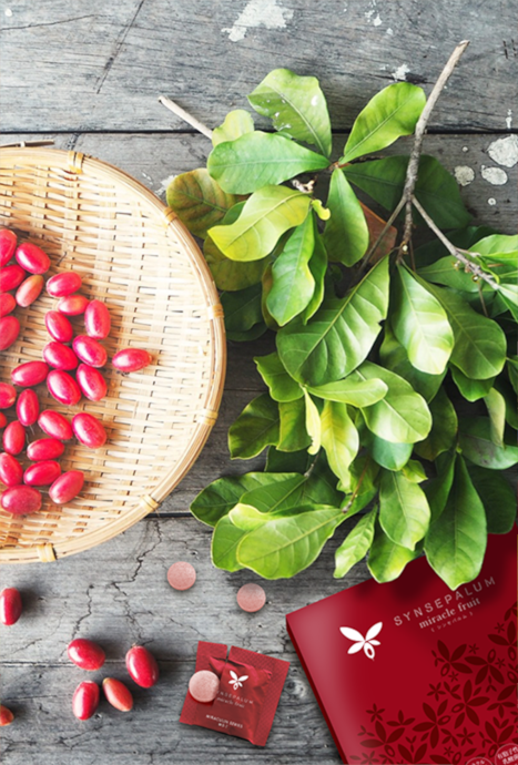 酸味のあるフルーツや飲み物を甘味に感じさせる味覚修飾活性(ミラクリンタンパク質)サプリメント。